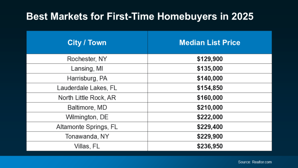 According to Realtor.com, these are some of the best markets for first-time homebuyers this year (see chart below):