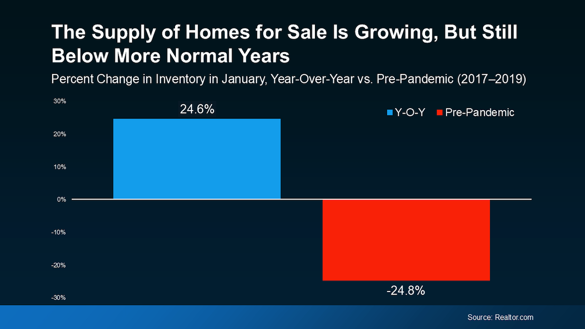 Realtor.com reports that inventory is up nearly 25% compared to this time last year (see graph below):